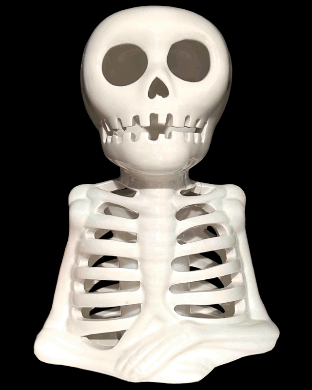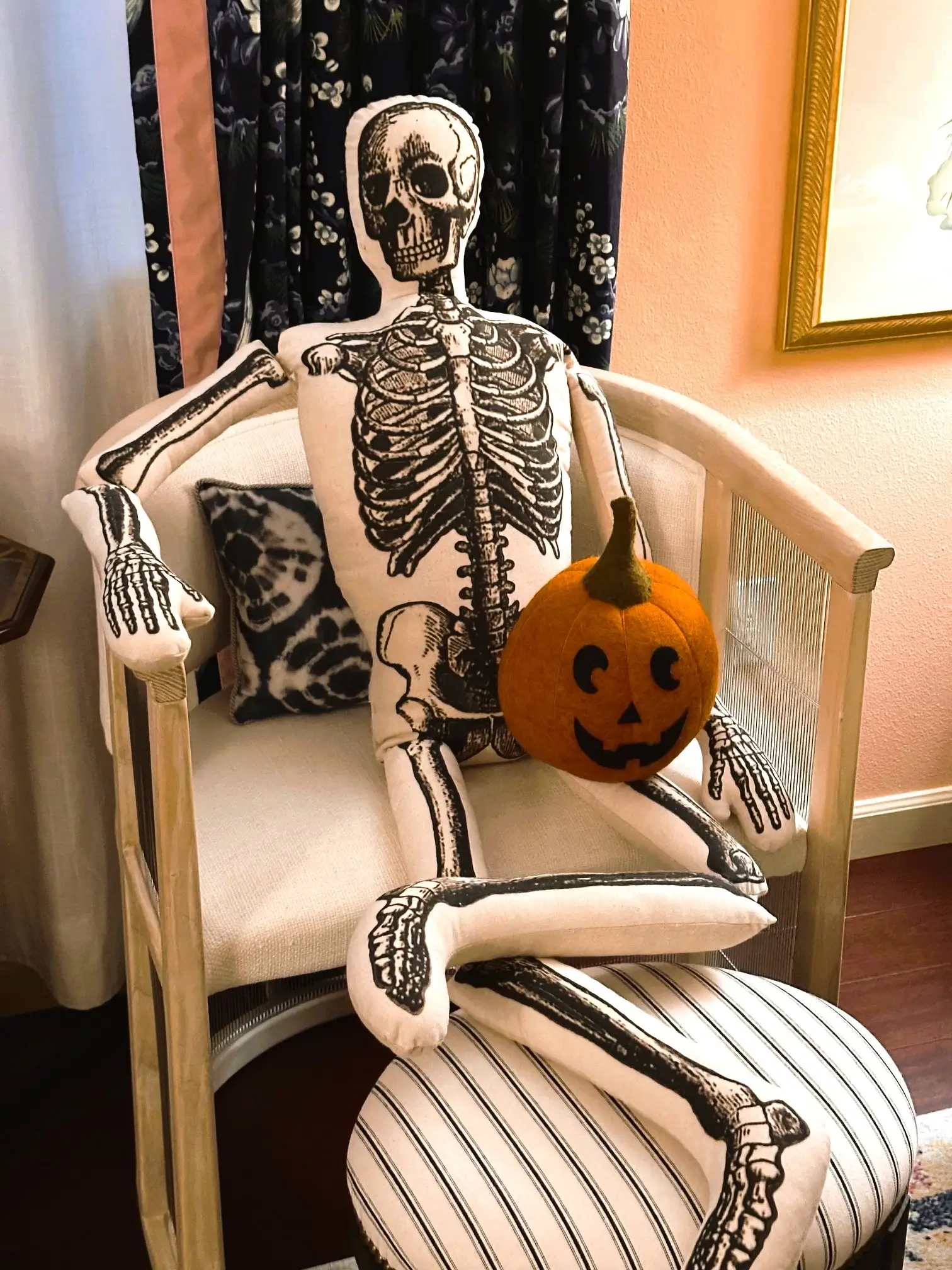I was able to snag a few must-have items myself, like the super-fun articulated skeleton pillow and ceramic ghost luminaries below, which are now extremely hard to find.