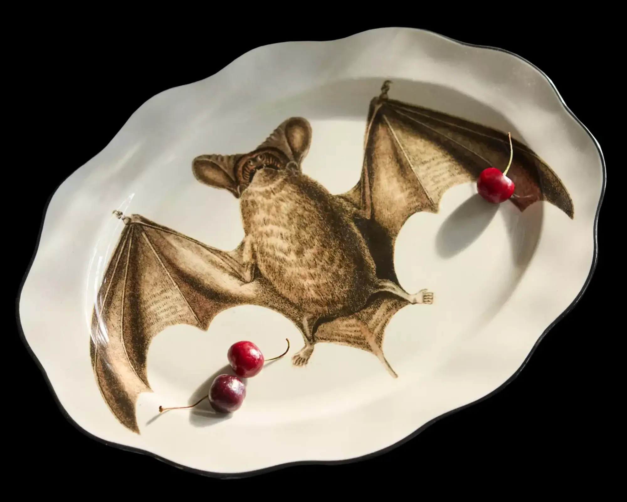 Ceramic Bat Platter // Bourbon Cider Tombstone Candle // Ghost Old-fashioned Glass