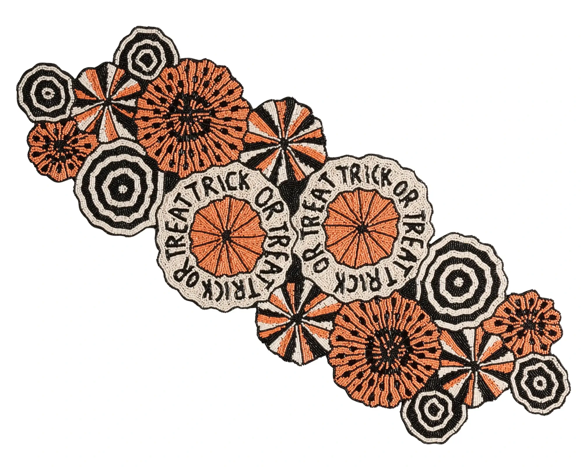 Beaded “Trick or Treat” Table Runner // Neon Rainbow “Diaphonized” Chameleon Skeleton // Vintage-Style Melamine Candy Bowl
