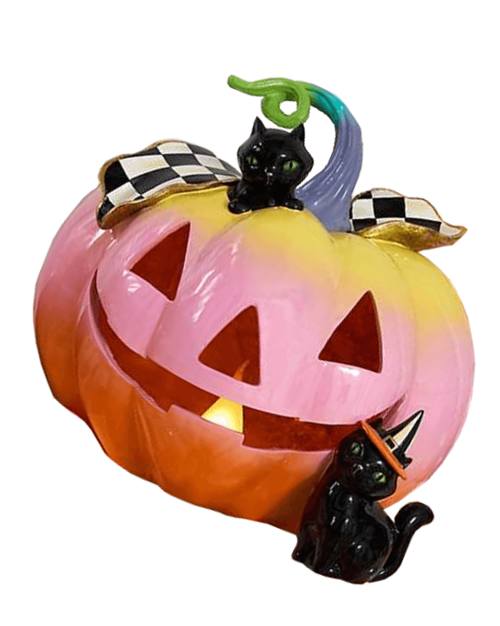 For 2024, we see a lot of cute decor, continuing a trend away from the overly grotesque. While the traditional colors of orange, black, white, purple and green are all still present, we also find a move towards pastels (a holdover from last year’s Barbie craze) and punchy neons. Here are some of the items that caught my eye: