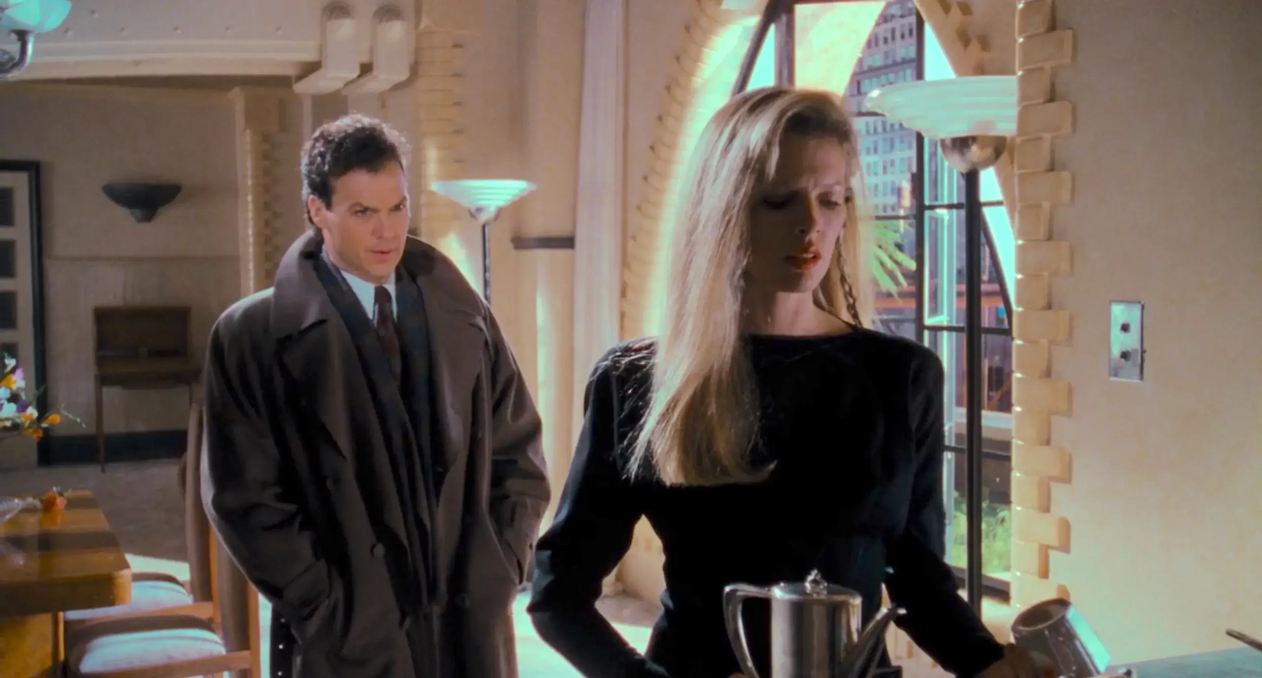 As with the other sets of the film, Vale’s apartment is the brainchild of set designer Anton Furst and set decorator Peter Young. Their work on the film would garner them the Oscar for Best Art Direction at the 62nd Academy Awards ceremony. Sadly, Furst would die by suicide in 1991, but his legacy survives on film. Thank goodness for that!