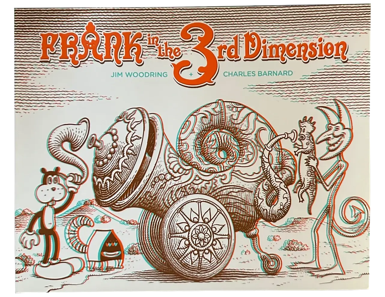 What could be more entertaining for your house guests than invoking the child-like fun of stereoscopic vision? The book has several illustrations featuring the titular character Frank (an anthropomorphic creature meant to look like cartoons of the early 20th century) exploring and interacting with a surreal universe.