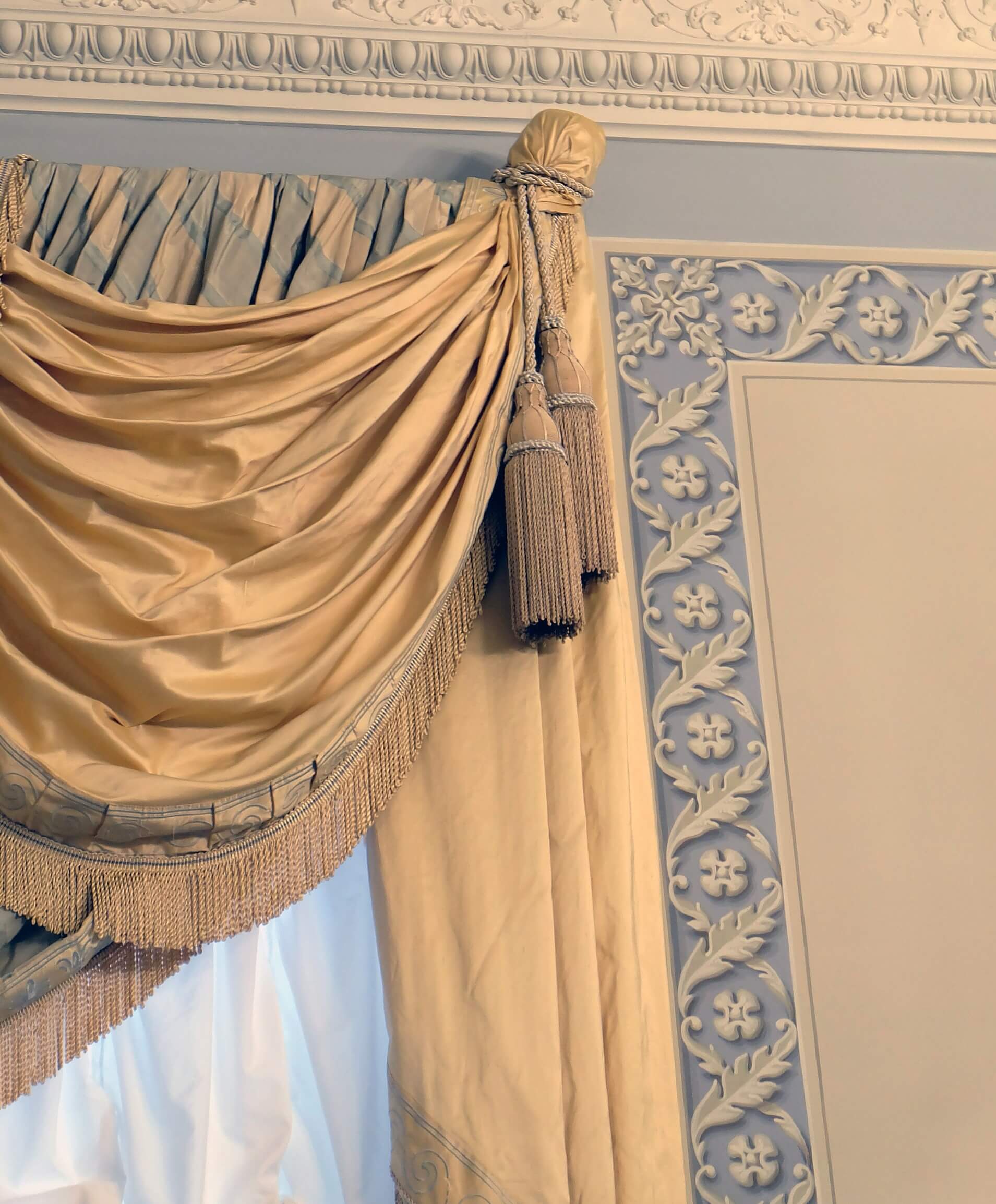 Fabric used for curtains can range from thin and nearly transparent, to thick and heavy depending on the needs for the covering. Elegant and extravagant swags use lighter-weight fabrics to produce the folds and ripples.
