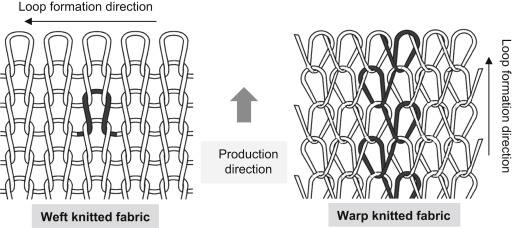 Fabrics will exhibit different properties based on their construction. I already mentioned how knit fabrics tend to have a significant amount of elasticity, for example. The amount of stretch in a given fabric will be different between woven and knit fabrics, and also depend on the grain of a fabric.