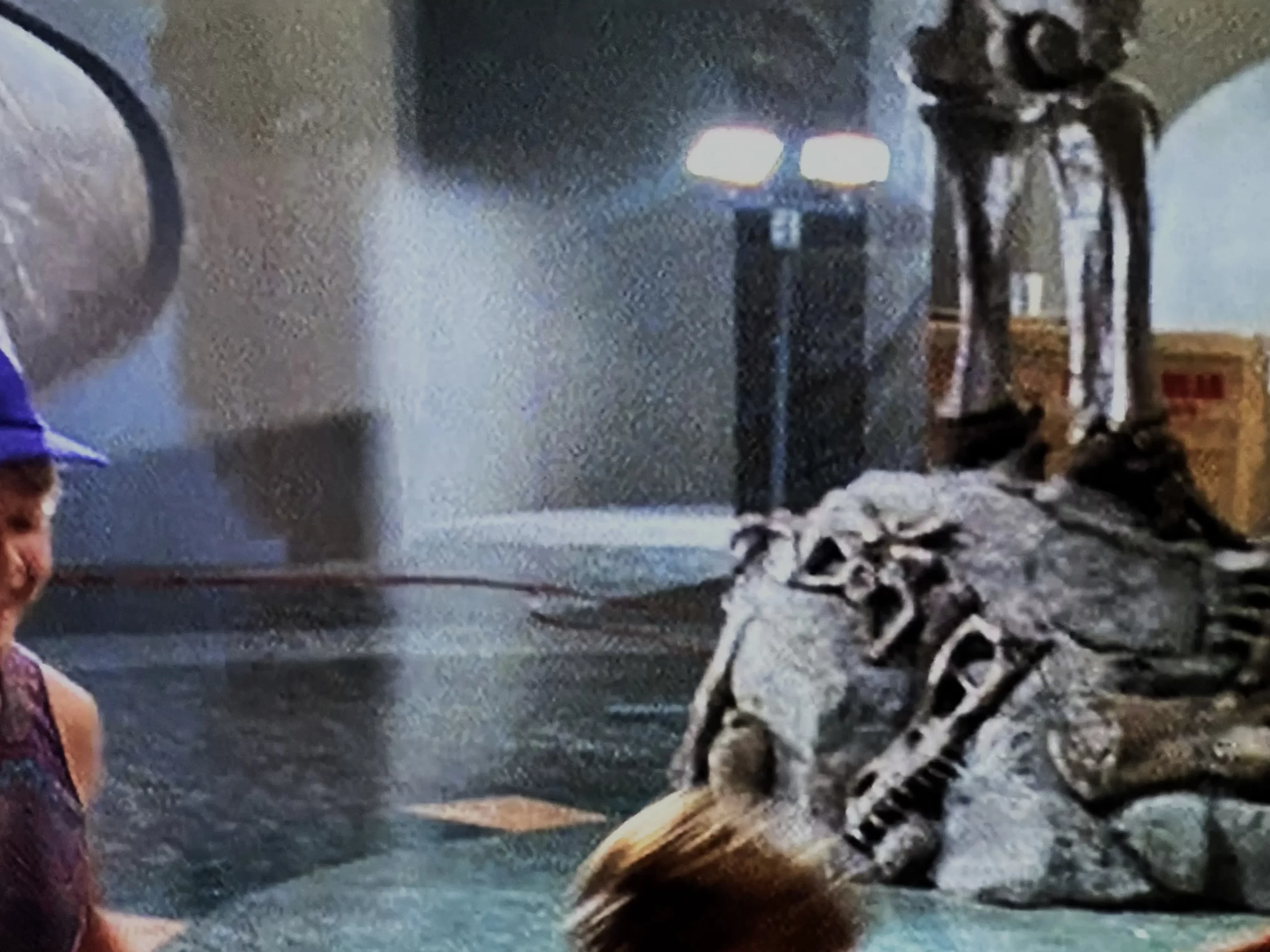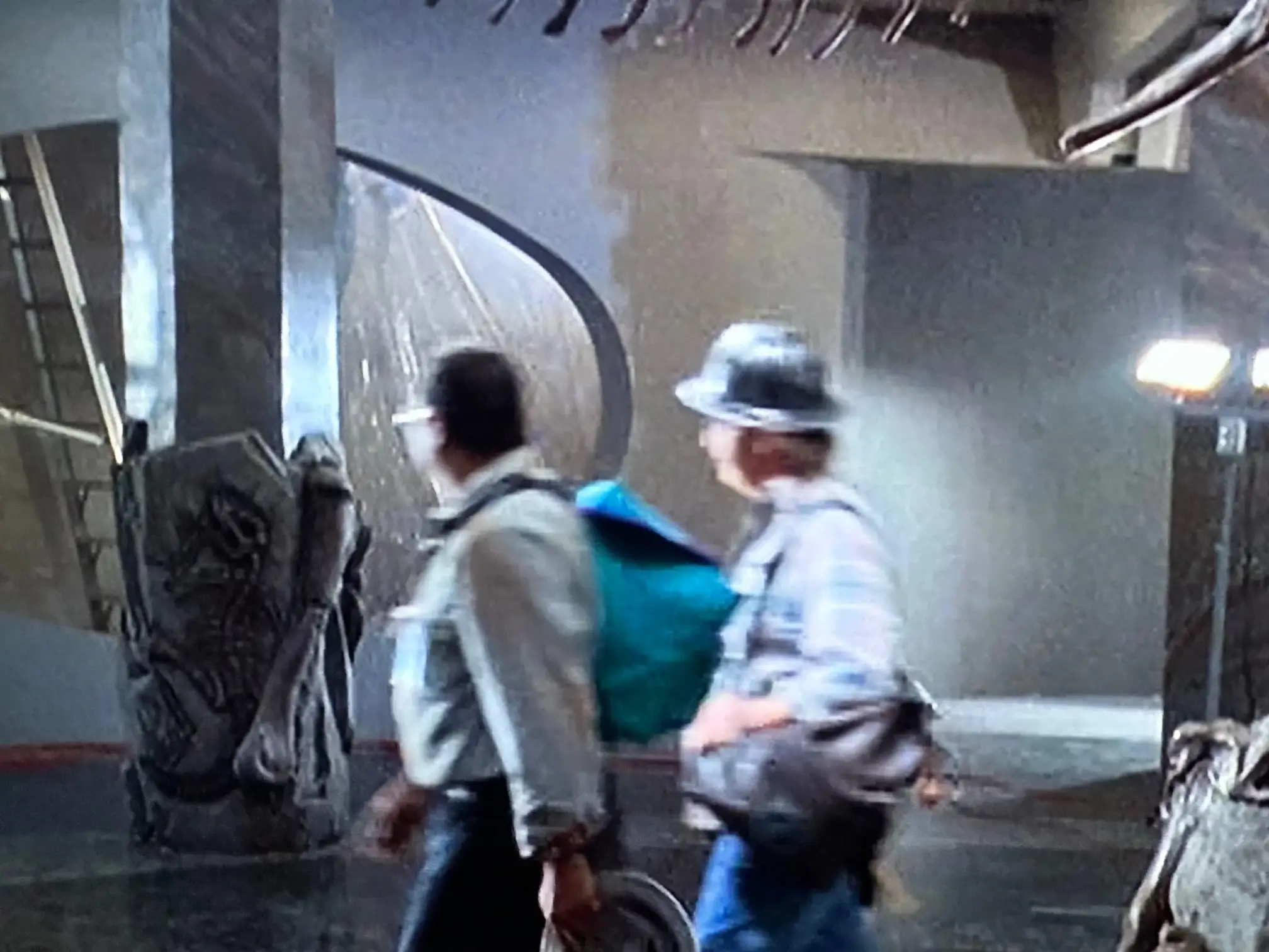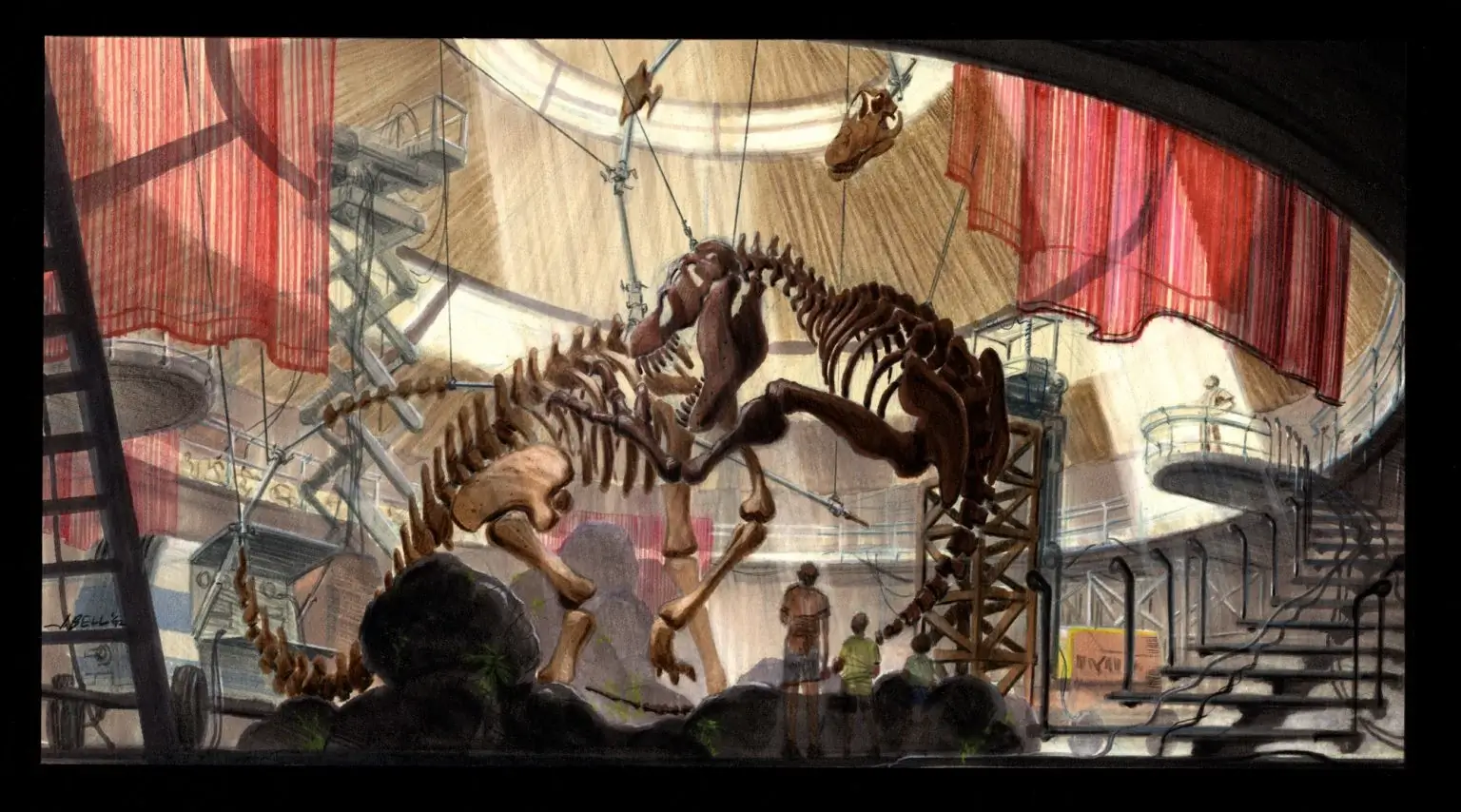 The gift shop actually looks much different in the film than in the original concept art, which had DNA helices emerging out of a giant piece of amber in the center of a round room that looks like a miniature Jurassic Park rotunda.