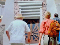 My last post was an introduction to the design of the Jurassic Park Visitor Center’s exterior. I touched on the architectural style of the building, and the elements which referred back to that style. I also touched on the meanings behind some of those elements as they relate to the story of Jurassic Park.