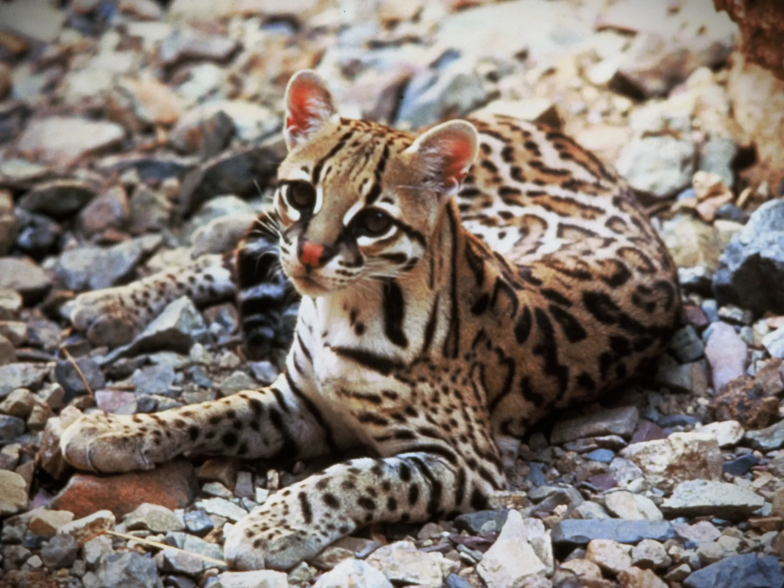 The ocelot (Leopardus pardalis) is a small New World cat that, like the jaguar, has historically ranged from the Southwestern United States to South America. A small remnant population still exists in far South Texas. On the ocelot (Leopardus pardalis) the rosettes are more vivid and appear to be stretched out lengthwise along the body, creating long streaks and stripes. They can also feature slight swirls or numerous dots within the rosettes.