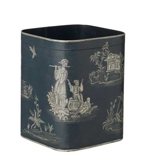 Wastebaskets are often the least-considered element of office decor. Doesn’t your trash deserve to go out in style? I love this iron chinoiserie option from OKA. USD $175.00