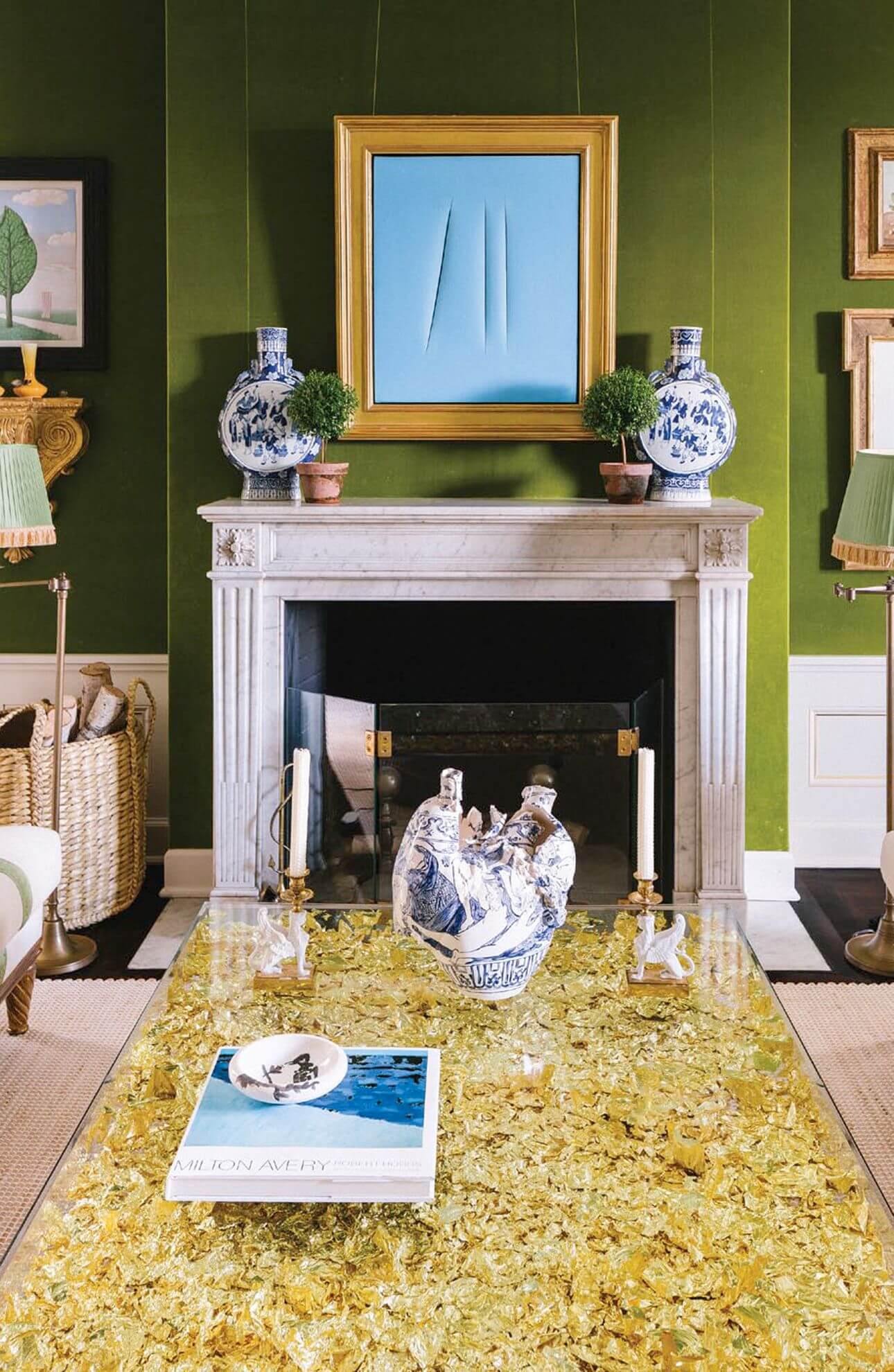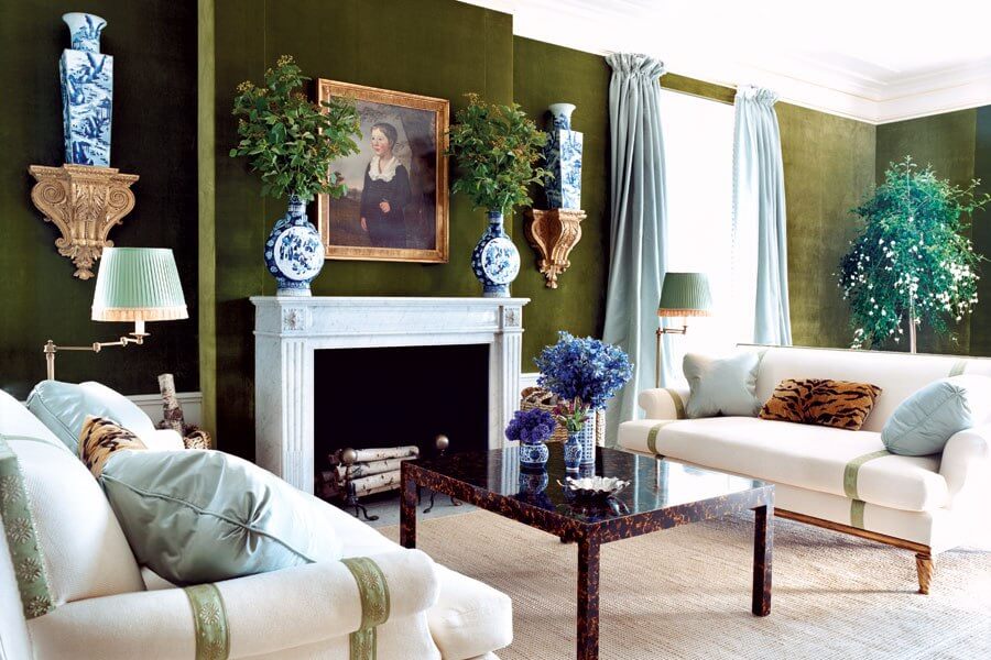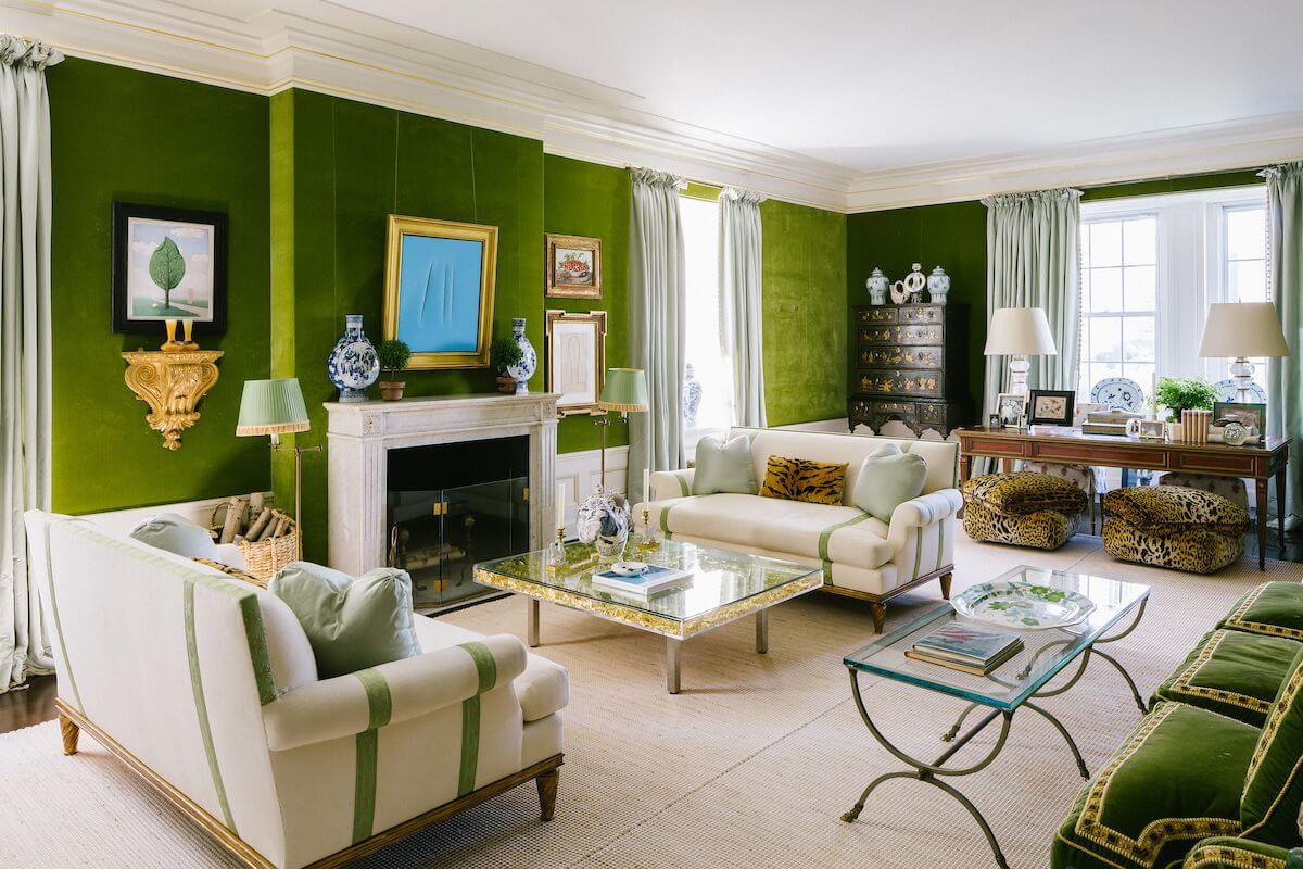 One of the most famous green rooms in the last 15 years is the one created by architect and designer Daniel Romauldez for Tory Burch. This room has made the rounds of the shelter press and blogs, of course, but it’s so well-executed that it is worth revisiting.