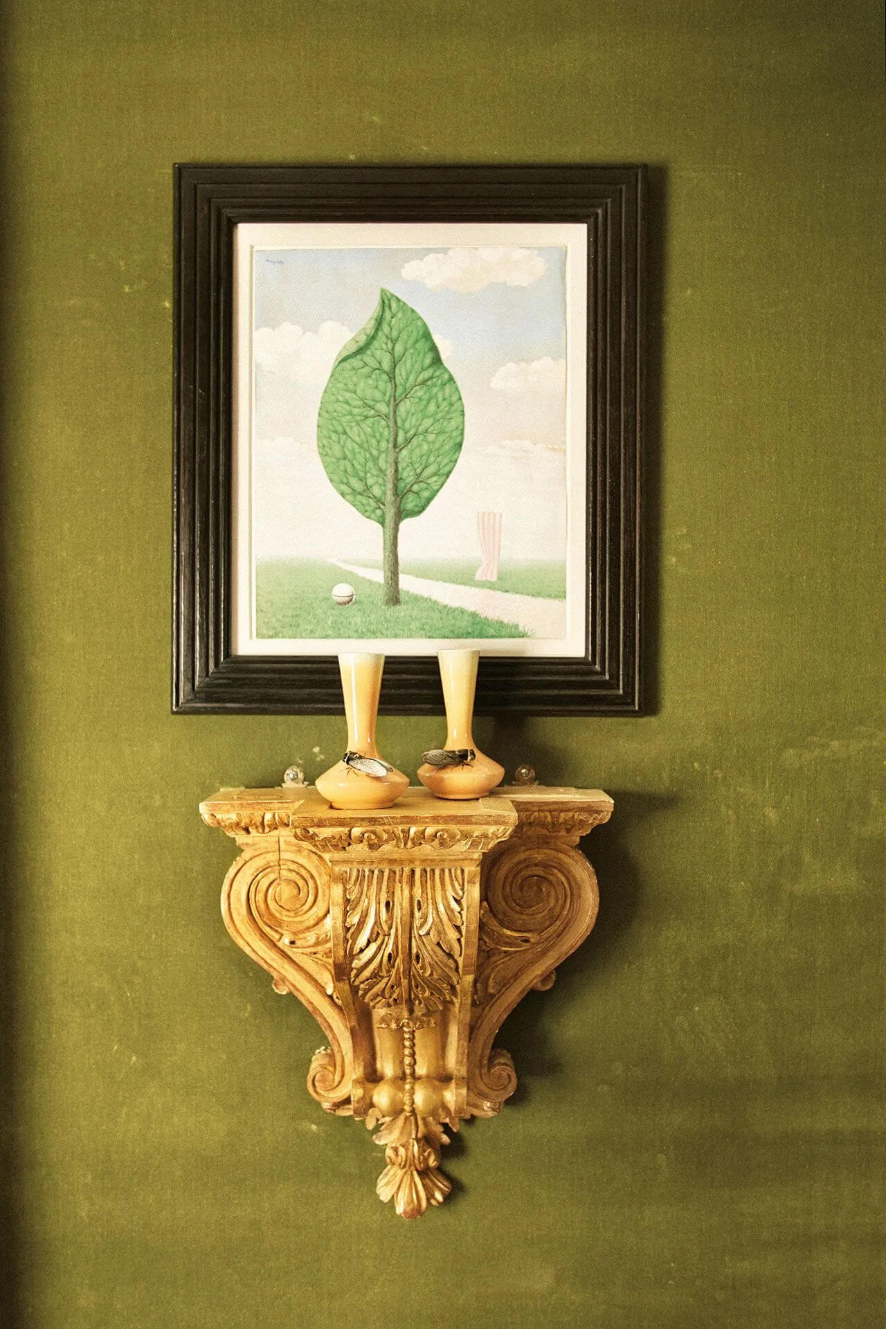 Those familiar with the history of interiors will instantly recognize an affinity to the grand salon implemented by Georges Geoffroy at 42 Avenue Foch in Paris for Guillaume and Dale de Bonchamps. Here, Geoffroy dressed the room from floor to ceiling in a cypress green Prelle velvet, including on the moldings.