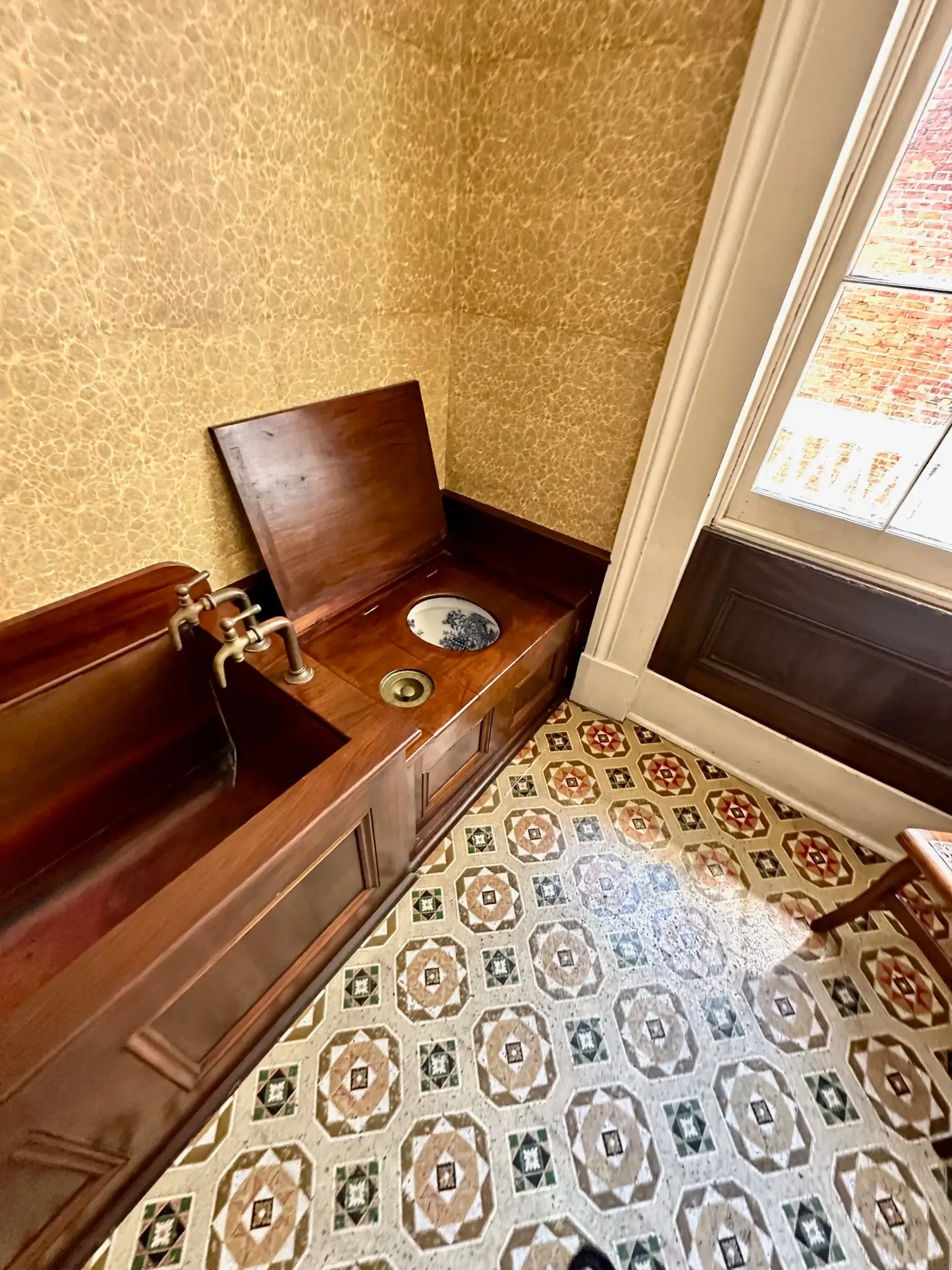 Accessible from the main house but still part of the service wing is the bathroom. Being an architect, Gallier was able to experiment a little with his own house and include some comforts that would not have been all too common. Indoor plumbing is one of these comforts, and the Gallier bathroom is pretty remarkable for its advancement. Warm and cool water could be piped into the bathtub, and the bathroom had an indoor flush toilet.
