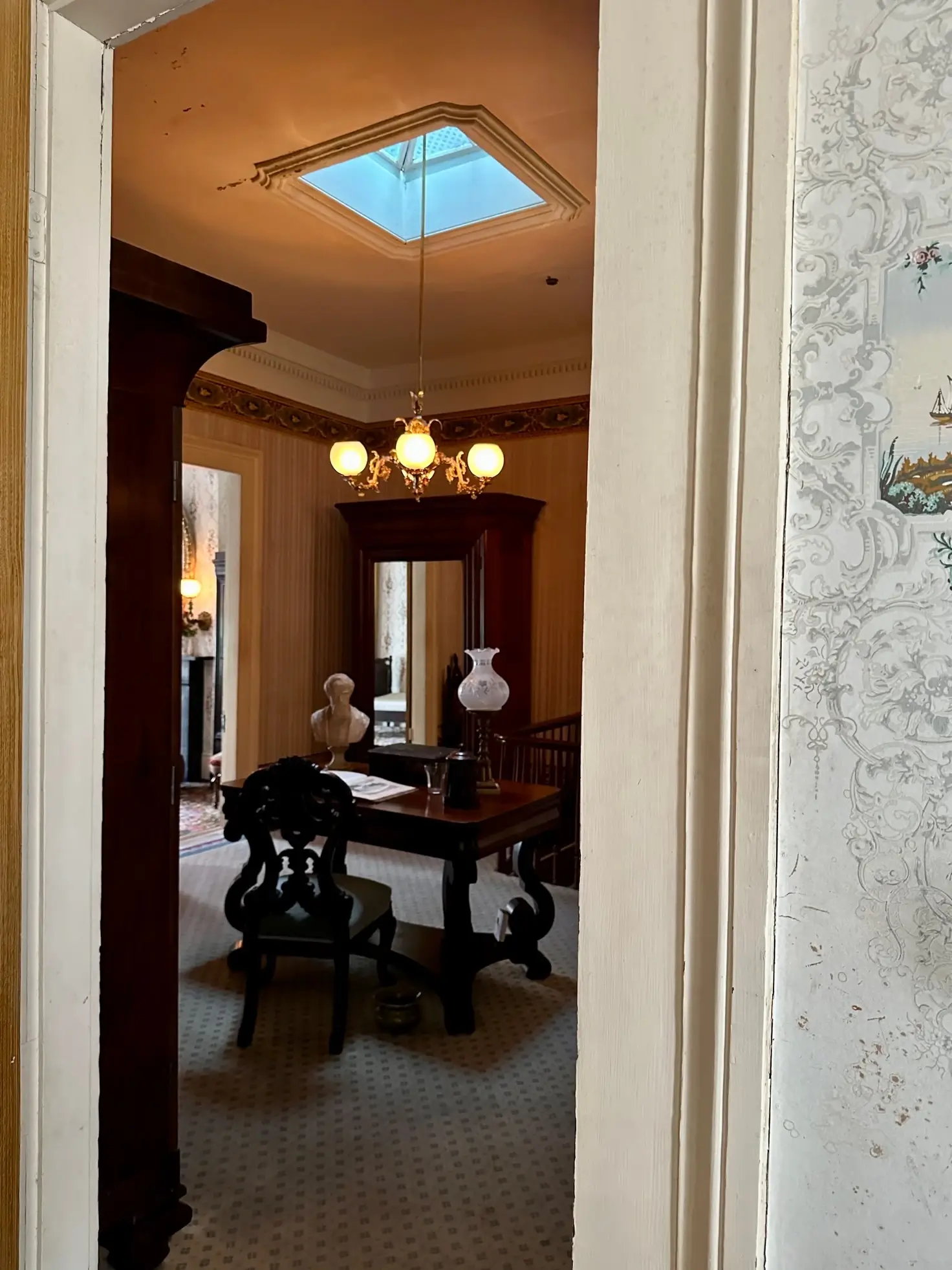 Moving to the second floor leads us to a landing that Mr. Gallier used as a study. The space is rather dark due to a lack of windows. However, being an architect, Gallier was quite clever to install a skylight that also opens up as an exhaust vent leading into the attic! Since hot air rises, the vent could be opened up in the summer months to cool down the rest of the house.
